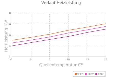 Je höher die Temperatur der Nutzungsseite liegt, desto mehr Leistung nimmt das Aggregat auf und desto weniger Heizleistung wird bereitgestellt.