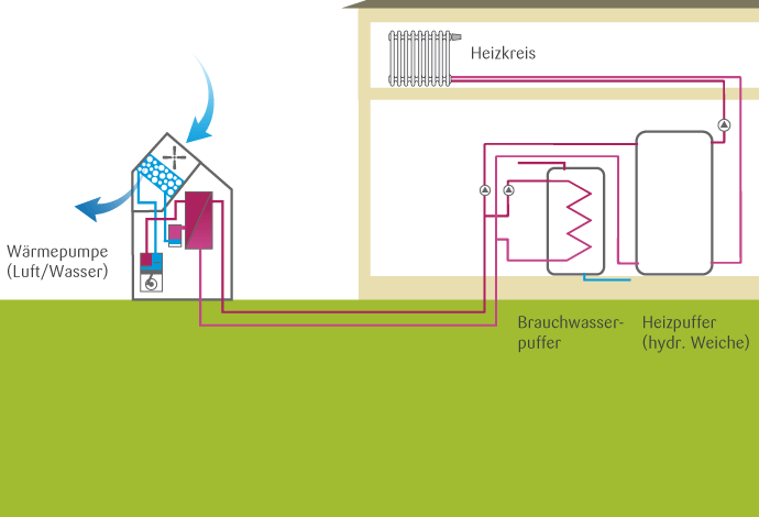 Die Wärmepumpe wird deshalb auf den Teillastbetrieb ausgelegt. Im Winter wird dann eine weitere Komponente zugeschaltet, damit die gewünschte Heiztemperatur erreicht wird.