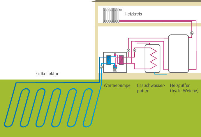 Sole/Wasser-Wärmepumpe mit Erdkollektor
